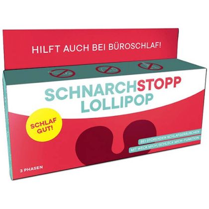 Bei störenden Schlafgeräuschen den süssen Lutscher auspacken und sich nach und nach in den Schlaf schlecken. Mit dem Schnarchstopp Lollipop läufts ab sofort wieder rund!